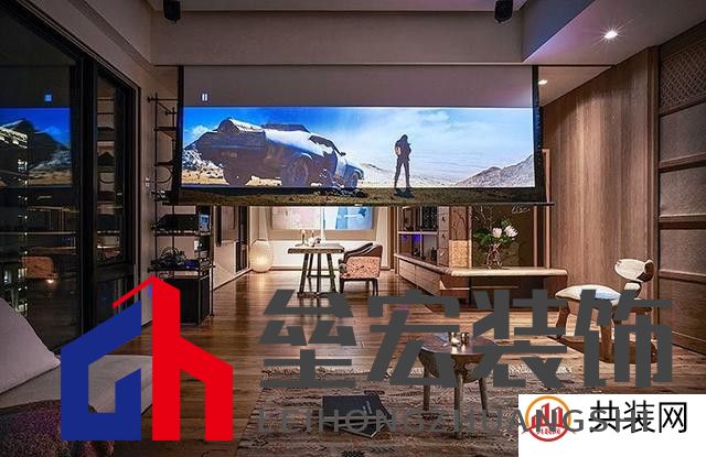 ▲選擇這種安裝方式的一般都是小戶型,也就是說(shuō),電視墻前面的位置另有其它的用處,比如這個(gè)案例的電視墻前面位置還要充當(dāng)書(shū)房使用,但又不想放棄偶爾看一下大片的需求,這種情況下,放一個(gè)大電視顯然是不合適的。但要注意的一個(gè)細(xì)節(jié)是,這個(gè)案例的投影幕布就是后來(lái)明裝的,沒(méi)有隱藏到吊頂里面,裝修效果相對(duì)差一些。