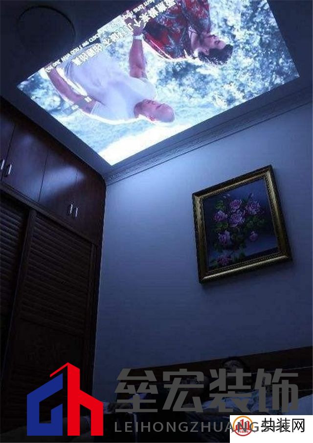 ▲當(dāng)然,如果你實(shí)在覺(jué)得墻面的確沒(méi)有地方可以懸掛投影幕布了,那么可以考慮一下直接投射到天花板上。不過(guò)秀巢網(wǎng)小編需要提示的是,這種情況一定要提前想好天花板主燈的位置,否則將來(lái)影像的位置有一盞燈的話,就比較影響觀看效果了。