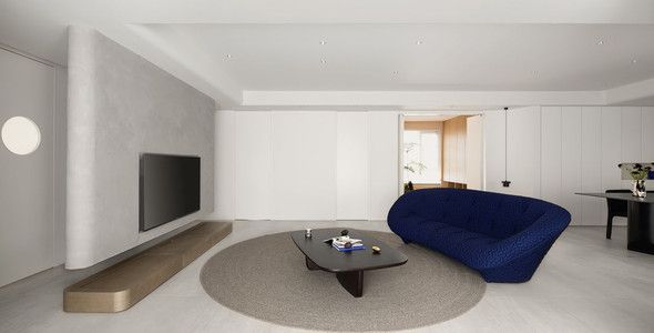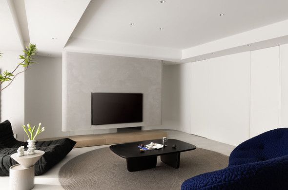圖/蘭斯 溫州隹聿設(shè)計(jì)工作室 我們可以從以下這個(gè)案例來(lái)直觀感受一下??雌饋?lái)很有層次感的懸空電視墻,內(nèi)藏玄機(jī),圍塑成了一條迂回動(dòng)線(xiàn),串聯(lián)起公共空間和功能區(qū),解決了原有戶(hù)型中過(guò)道太多,動(dòng)線(xiàn)不合理的情況,絲滑的圓角詮釋了工藝精湛的內(nèi)核。
