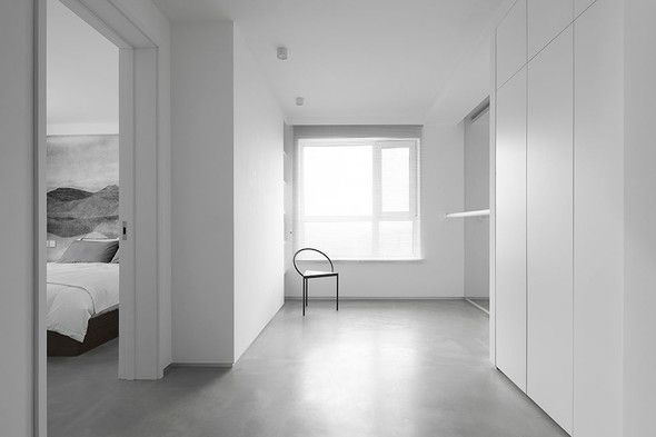 圖/東己壤設(shè)計(jì)研究室 3、設(shè)計(jì)的克制 極簡(jiǎn)的設(shè)計(jì),是不再以形式為設(shè)計(jì)的出發(fā)點(diǎn),講究的是設(shè)計(jì)和實(shí)用的科學(xué)融合。簡(jiǎn)約而不簡(jiǎn)單,是設(shè)計(jì)師經(jīng)過(guò)深入了解居住者的生活習(xí)慣和愛(ài)好,來(lái)去繁從簡(jiǎn),合理規(guī)劃而來(lái)的。其強(qiáng)調(diào)空間的單純性,去掉多余的裝飾,將空間簡(jiǎn)化到光、墻和體,造成空間的流動(dòng)和不同層次的穿透性。讓居住者在這樣的環(huán)境中得到徹底的放松,以簡(jiǎn)潔的居住空間換取專(zhuān)注的精神空間。 比如這個(gè)單層4米6的頂樓,設(shè)計(jì)師采用“隱”和“簡(jiǎn)”的處理方式,滿(mǎn)足喜歡簡(jiǎn)單生活的年輕屋主。 整體空間大面積留白,家居尺寸不為顯闊綽,而是參考到居住者的使用情況,點(diǎn)到為止。