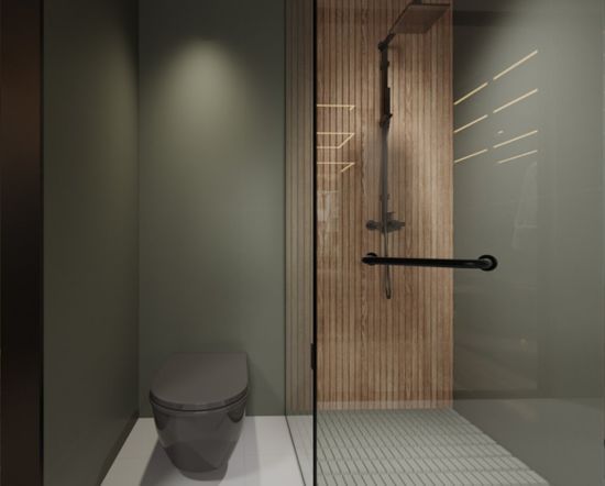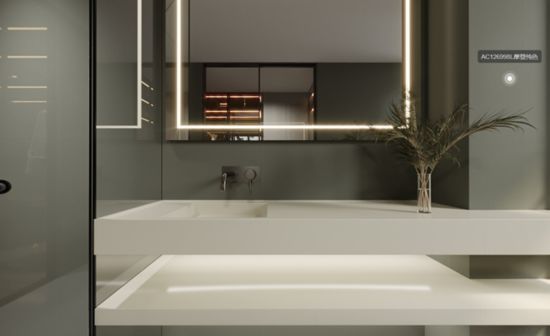 墻面:箭牌復(fù)合輕紋磚 卡拉拉AC24101P 地面:箭牌復(fù)合輕紋磚 波爾灰AC91809P 純凈留白 沐浴人間春色 中性的灰綠色背景 好比一灣碧水清澈明凈 打破了以往浴室裝修的傳統(tǒng) 讓人眼前一亮,倍感愉悅