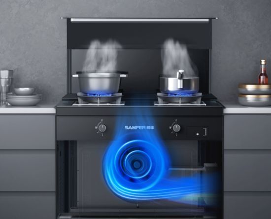 ▲帥豐集成灶 在集成灶之前,油煙的解決只能依靠油煙機(jī)。但油煙機(jī)只有吸凈60%左右的油煙,這樣的數(shù)據(jù)表現(xiàn),在中國(guó)的開放式廚房里,那是萬萬行不通的。集成灶的普及,給開放式廚房”油煙無殘留“提供了一個(gè)新思路。 增大吸力+縮短距離:油煙無處可逃