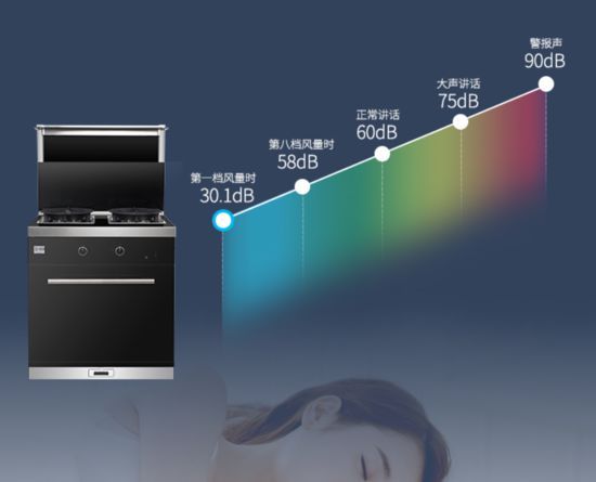 ▲帥豐集成灶,離油煙的距離更近 集成灶對(duì)油煙的解決從兩方面著力,增大吸力和縮短距離并舉。其采用側(cè)吸的方式,增強(qiáng)攏煙,防止油煙的逸散;大吸力的風(fēng)機(jī),配備超短距離的吸煙距離,可以實(shí)現(xiàn)比傳統(tǒng)油煙機(jī)數(shù)倍的吸煙效率。集成灶對(duì)油煙的吸凈率高達(dá)95%以上,而帥豐集成灶的吸油煙率更是高達(dá)99.96%,幾乎接近0的跑煙率,無懼中式爆炸產(chǎn)生濃煙,真正做到廚房無油煙。 超低噪音:開放式廚房的最愛