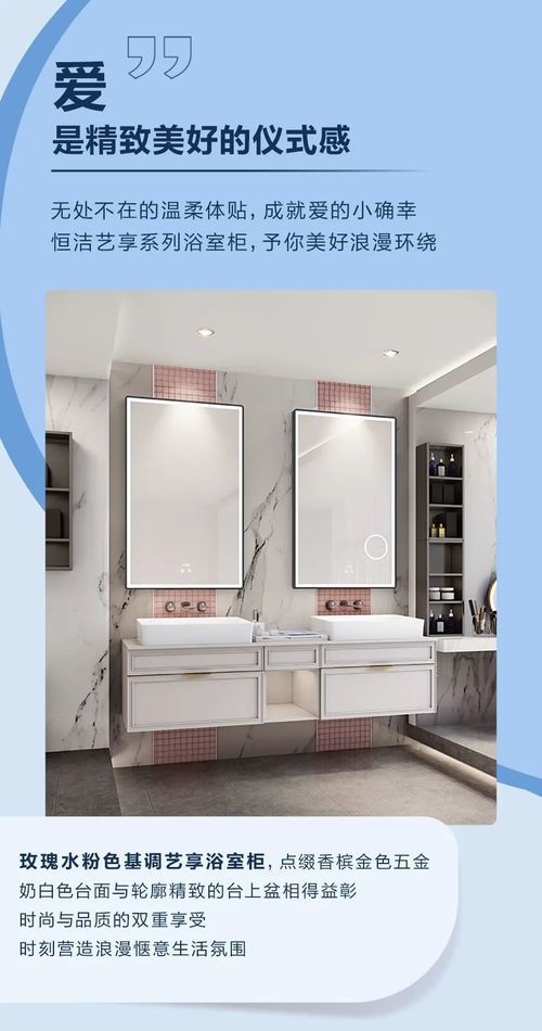擁有恒溫防燙技術(shù),最快0.2S響應(yīng),控溫快準(zhǔn)穩(wěn), 即使多水路同時用水,無懼忽冷忽熱,水溫始終舒適安全, 同時采用水凈技術(shù)全新涂層, 高效疏水,不留水漬,更容易清潔。 愛是精致美好的儀式感 無處不在的溫柔體貼,成就愛的小確幸, 恒潔藝享系列浴室柜,予你美好浪漫環(huán)繞。