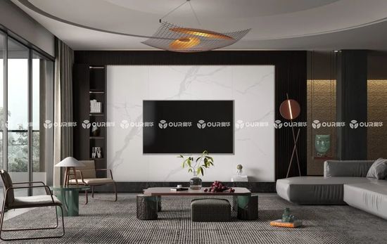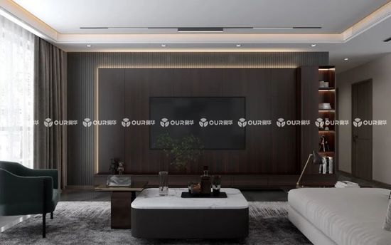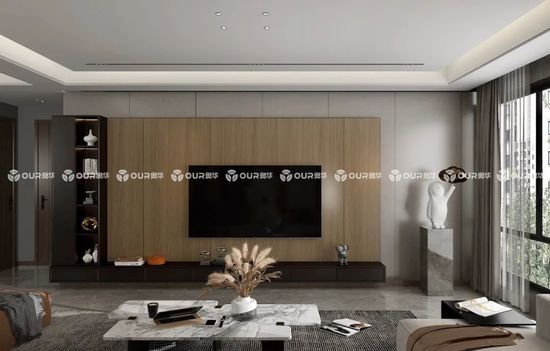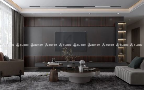 單獨將奧華黑喬木運用在柜子上,與不同暖色系色調(diào)電視背景墻搭配更顯精致,陽光的照耀之下還能展現(xiàn)出高級的美感。