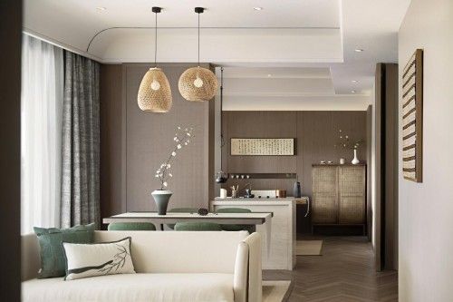 自然界的每一種現(xiàn)象,都與一種心靈狀態(tài)相呼應(yīng)。設(shè)計捕捉這份轉(zhuǎn)瞬即逝的居家感受,重新賦予空間與生活聯(lián)系。暮色之中,人的內(nèi)心不自覺進(jìn)入一種疲態(tài),這時候人需要給自己一個放松的空間,去承載和包容。設(shè)計再次營造了一個令人舒適的氛圍,讓心境回歸到一個自然寧靜的狀態(tài)。 位于端頭的茶室營造了生活的悠然,一如成都人的“關(guān)上門來,白茶清歡無別事”。借暮色煮一杯清茶,夕陽西下,各自在。客廳、餐廳與茶室,隱藏式移門設(shè)計,在整體布局上一以貫之,讓彼此隔而未隔,界而未界,空間互為聯(lián)系。