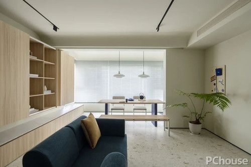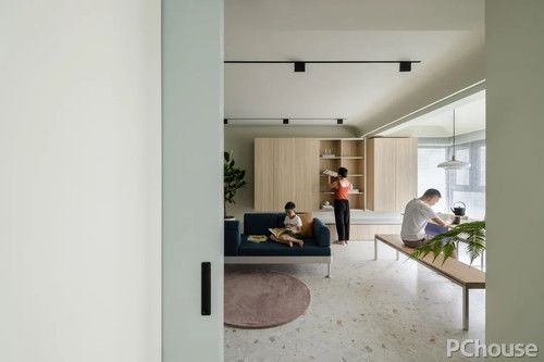 客 廳考慮到老人偶有看電視的需求,設(shè)計(jì)師保留了電視的功能,只是沒(méi)有像傳統(tǒng)電視固定掛放在墻上,而是和客廳與玄關(guān)間的移門(mén)做了個(gè)結(jié)合。需要的時(shí)候讓它成為主角,而大部分時(shí)候,電視隨移門(mén)靠在墻角,保持客廳和玄關(guān)開(kāi)敞的狀態(tài),弱化本身的存在感,非常巧妙。 Q5 您覺(jué)得從最終的效果來(lái)看,付設(shè)計(jì)費(fèi)請(qǐng)專業(yè)設(shè)計(jì)師這個(gè)事是不是值得的呢? 屋主:驍姐 是值得的。雖然一開(kāi)始覺(jué)得設(shè)計(jì)費(fèi)有一點(diǎn)貴,但最終效果出來(lái),我們覺(jué)得還是非常值得的。設(shè)計(jì)師的方案有很多巧思,有些是我們自己也沒(méi)有想到的點(diǎn),就比如這個(gè)電視的位置,真的幫我們解決了不少格局問(wèn)題,很開(kāi)心可以與榮燁老師合作。 Q6 在整個(gè)設(shè)計(jì)施工和落地的過(guò)程中,最讓您難忘的事情是什么? 屋主:驍姐 最難忘的事有兩件。第一個(gè)就是我心心念念的大桌子,因?yàn)槲抑熬吞岢鱿胍粋€(gè)多功能大桌子,可以喝茶,也可以和小朋友一起做手工,但我們概念里也就是放置一個(gè)普通的四腳桌,而設(shè)計(jì)師為此卻做了整體的規(guī)劃,一開(kāi)始我們也有點(diǎn)質(zhì)疑,但還是選擇相信設(shè)計(jì)師的專業(yè)度,沒(méi)想到最終效果非常好。