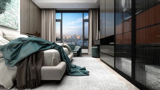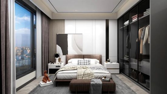 ▲TE017-5 次臥設(shè)計了一整面墻的透明式衣柜,方便衣物收納需求的同時增大了視覺空間。軟裝方面則采用了大量頗具藝術(shù)感的設(shè)計,使得整個臥室兼具了美觀性和實用性。 責(zé)任編輯:sunweiying |