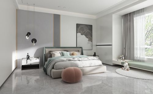 臥室區(qū)域 白灰搭配,是經(jīng)典的高級(jí)配色?;疑卮u沉穩(wěn)內(nèi)斂,白色墻磚平靜柔和,兩者搭配極具品質(zhì)感,輕松營(yíng)造出端莊優(yōu)雅、美觀大氣的空間,讓家更加具有親和力與感染力,符合當(dāng)代年輕人的審美與需求。 多元組合,時(shí)尚獨(dú)特
