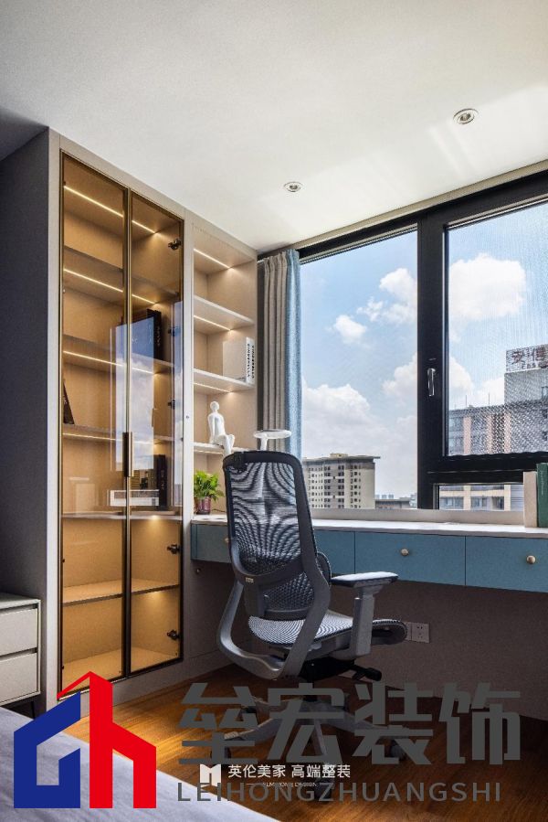 定制柜加上磨砂玻璃的裝點,增強了視覺延伸,帶來輕松愜意的氛圍與意境。這樣完美實用的設計,當然選擇美家高端整裝。