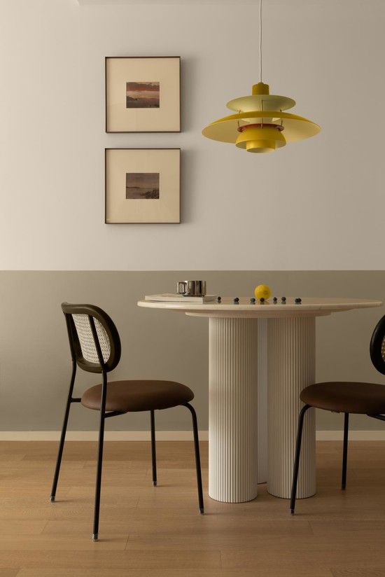 當(dāng)具有高級(jí)美感呼吸色盤被大面積運(yùn)用于客餐廳區(qū)域時(shí),呈現(xiàn)出了讓人倍感舒適的懷舊、經(jīng)典風(fēng)格,無論從視覺上還是觸感上,都為居家生活帶來了寧?kù)o溫柔、慵懶愜意的氛圍感。