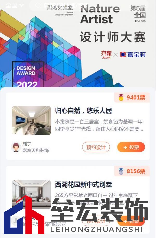從8月25日啟動(dòng)作品征集以來,共吸引了數(shù)千名設(shè)計(jì)師提交參賽作品,目前收到的作品主要為圖文和視頻兩種形式,在參賽作品當(dāng)中,不少參賽設(shè)計(jì)師巧妙的將嘉寶莉藝術(shù)涂料元素融入到作品的整體風(fēng)格當(dāng)中,完美的將家居空間與自然藝術(shù)融合,展現(xiàn)出了設(shè)計(jì)作品的藝術(shù)張力。10月21日,第五屆全國設(shè)計(jì)師大賽將正式進(jìn)入全國總決賽環(huán)節(jié),屆時(shí)各大區(qū)的參賽選手,將圍繞全國設(shè)計(jì)案例金獎(jiǎng)、全國視頻案例金獎(jiǎng)兩大獎(jiǎng)項(xiàng)展開激烈的角逐。 此次大賽邀請了國內(nèi)高端設(shè)計(jì)大咖和行業(yè)專家擔(dān)任評(píng)委,將從多個(gè)維度對(duì)參賽作品進(jìn)行評(píng)選,同時(shí)也為有需要的設(shè)計(jì)提供指導(dǎo)與幫助,提高行業(yè)設(shè)計(jì)師面對(duì)復(fù)雜挑戰(zhàn)的綜合能力,并為家裝行業(yè)發(fā)掘設(shè)計(jì)新星。 什么,裝修還用自己的錢?!齊家裝修分期,超低年利率3.55%起,最高可貸100萬。立即申請享受優(yōu)惠 |