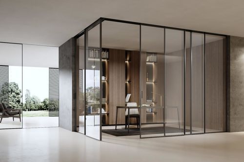 通過(guò)德立全景門(玻璃隔斷門),重新劃分房屋的動(dòng)靜分區(qū),讓家擁有流暢的生活動(dòng)線。對(duì)于日常使用最頻繁的兩個(gè)空間,將客廳與餐廳無(wú)界鏈接,融為一體。通透的玻璃,細(xì)膩的紋理,收窄的邊框,放眼望去延展全景視野。邀約朋友相聚晚餐,暢意洄走,恣意恬適,縱享自由自在時(shí)光。 02.多元場(chǎng)景運(yùn)用,成就美學(xué)空間 隨著居家辦公成為不少年輕人的常態(tài),獨(dú)居生活需要留出辦公和學(xué)習(xí)的安靜空間,滿足工作與愛(ài)好的需求。 德立全景門在不影響原來(lái)的客廳布局下,打造居家式的“玻璃書(shū)房”。