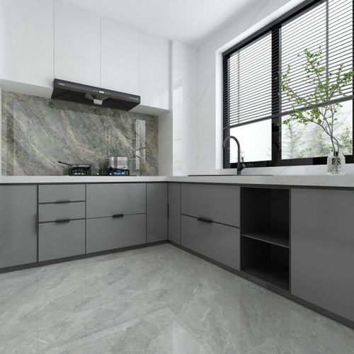 廚房 美好的生活,離不開廚房的煙火氣。高級灰的巖板、深灰色的背景墻、銀灰色的櫥柜,三種不同層次的灰色搭配,彰顯侘寂風的素雅與溫和,同時也讓廚房的每個部分有更強的連接感,打造一個溫馨精致的烹飪空間。