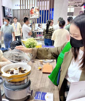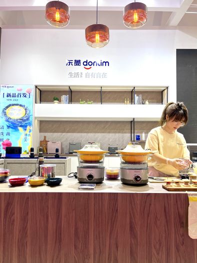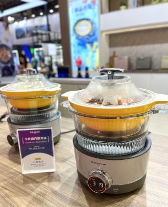 展會(huì)期間,東菱邀請了專業(yè)美食達(dá)人現(xiàn)場復(fù)刻汽鍋雞湯。通過蒸汽鍋的“汽鍋模式”,達(dá)人自制兩道夏日時(shí)令靚湯:羊肚菌汽鍋雞湯、鮑魚汽鍋排骨湯。利用蒸汽烹飪,食材無需加一滴水,開放式廚房場景設(shè)計(jì)讓觀眾直觀地看到“蒸汽循環(huán)慢慢凝結(jié)成精華湯汁”的過程。