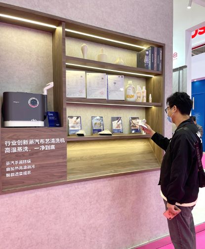 一直以來,中國人深信“蒸汽殺菌”更干凈。東菱創(chuàng)新把蒸汽科技深度應(yīng)用到布藝清洗機(jī)中,加上自加熱高溫融污理念強(qiáng)化布藝清潔力,二者技術(shù)強(qiáng)強(qiáng)聯(lián)合,實(shí)現(xiàn)去污、殺菌、除螨三合一。 展會(huì)上,工作人員通過模擬番茄汁、醬油等常見污漬打翻情況,現(xiàn)場展示“高溫清潔”模式的強(qiáng)勁清潔效果:簡單的“噴刷吸”動(dòng)作,前后不過幾分鐘,地毯上原本的污漬瞬間就沒了!如此高能清洗,馬上就獲得了客戶朋友高度認(rèn)可!