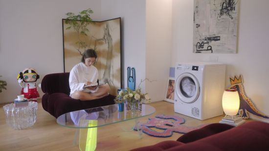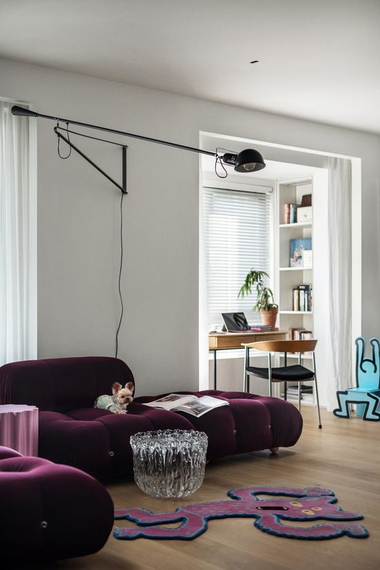 藝術(shù)在左,日常在右 當(dāng)代年輕人對(duì)潮流的追求從日常著裝逐漸侵入生活的方方面面,追求潮流似乎成為downtown青年的新興生活方式。在時(shí)尚領(lǐng)域,時(shí)裝的時(shí)效性成為衡量流行的標(biāo)準(zhǔn)。而在家居設(shè)計(jì)中,實(shí)用性和流行度需要平衡考慮、相輔相成。如何在家這個(gè)空間中營(yíng)造出新鮮感就是當(dāng)下設(shè)計(jì)師們的課題了。 在與柯沅伽的交流中,她特別談到家中的無(wú)過(guò)道設(shè)計(jì),將客廳打造成一個(gè)完整的空間,家就是她心境的完全寫(xiě)照。110平米的空間里每一處都是她精心挑選的心愛(ài)之物。客廳裝滿了自己喜歡的藝術(shù)品,家具和軟裝可以根據(jù)季節(jié)與心情隨意變化組合,任情緒自由流動(dòng),無(wú)拘無(wú)束。