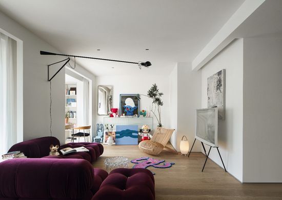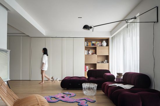 藝術(shù)在左,日常在右 當(dāng)代年輕人對(duì)潮流的追求從日常著裝逐漸侵入生活的方方面面,追求潮流似乎成為downtown青年的新興生活方式。在時(shí)尚領(lǐng)域,時(shí)裝的時(shí)效性成為衡量流行的標(biāo)準(zhǔn)。而在家居設(shè)計(jì)中,實(shí)用性和流行度需要平衡考慮、相輔相成。如何在家這個(gè)空間中營(yíng)造出新鮮感就是當(dāng)下設(shè)計(jì)師們的課題了。 在與柯沅伽的交流中,她特別談到家中的無(wú)過(guò)道設(shè)計(jì),將客廳打造成一個(gè)完整的空間,家就是她心境的完全寫照。110平米的空間里每一處都是她精心挑選的心愛(ài)之物??蛷d裝滿了自己喜歡的藝術(shù)品,家具和軟裝可以根據(jù)季節(jié)與心情隨意變化組合,任情緒自由流動(dòng),無(wú)拘無(wú)束。