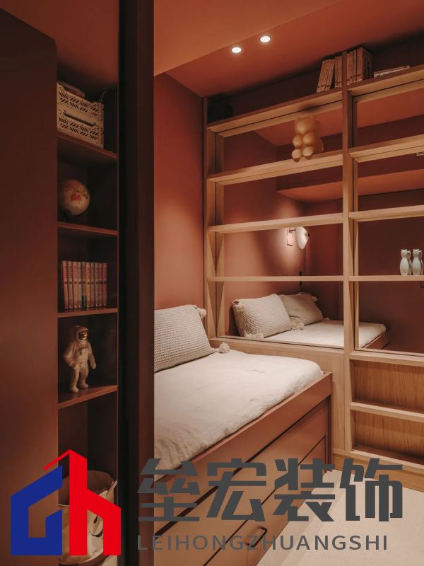 主臥室通過(guò)滑動(dòng)折疊門(mén)與起居區(qū)隔開(kāi),確保隱私的同時(shí)保留開(kāi)放感。隱藏在書(shū)架后的門(mén)通向浴室和第二間臥室,為空間增添了巧妙的層次感。