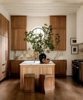 設計師用業(yè)主豐富的藝術藏品裝點墻面,精選跨時代的攝影佳作,為空間增添了深厚的藝術氛圍。開放式廚房移除兩室間的隔墻,營造更為寬敞明亮的效果。淺色調(diào)的木質櫥柜與地板和諧相融,大理石防濺板與圓形窗戶則為整體設計增添戲劇化的亮點。 ?