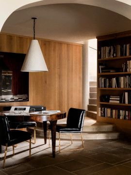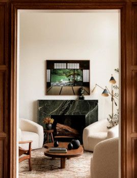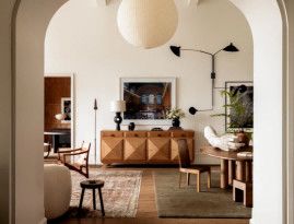 Betsy?Brown對于原有空間里對于年輕人不夠友好的設計進行了重新規(guī)劃,不僅優(yōu)化了空間配置,更在美學層面展現(xiàn)了非凡的創(chuàng)造力。設計師將現(xiàn)代生活的舒適性與經(jīng)典美學線條融合,構筑出一個洋溢著藝術氛圍、獨具魅力的居所,充分彰顯藝術之家獨特而不凡的品味。 ? 米白、棕褐及灰黑等溫和而深邃的自然色彩籠罩空間,家具與裝飾品的挑選秉持著極簡主義的流暢線條感。 在材質運用上,Betsy?Brown巧妙融入木材、石材、亞麻織物與皮革等自然元素,不同的質感,以及在歲月洗禮下別具一格的風貌顯現(xiàn)。這個占地4500平方英尺的家,共15個房間,涵蓋書房、藝術創(chuàng)作室、攝影工作室、三間臥室,以及底層的酒窖、酒吧和健身區(qū)域等。Brown巧妙地將客廳劃分為兩個獨立空間,并在接近前門的位置增設了一張橢圓形的大型餐桌,既實用又添雅致。站在陽臺上,可以飽覽伯明翰連綿的山巒和城市標志性建筑的壯麗景色。這些自然與人文景觀為設計師提供了無盡的靈感,她巧妙地將室外蔥郁的綠意引入室內(nèi),實現(xiàn)了一種將外界美景融入居家空間的藝術效果。