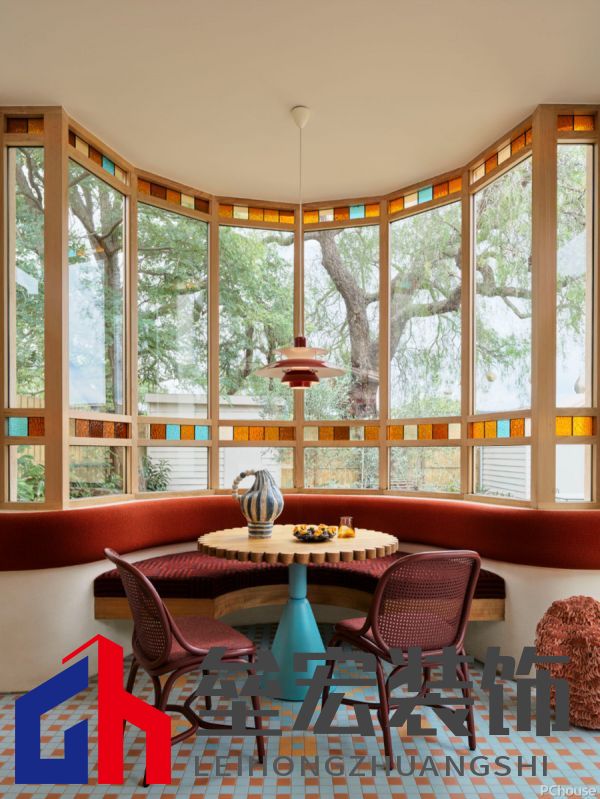 曲線美的餐廳壁龕與房屋窗戶的幾何設計相呼應,成為整個家庭生活區(qū)域的視覺中心。