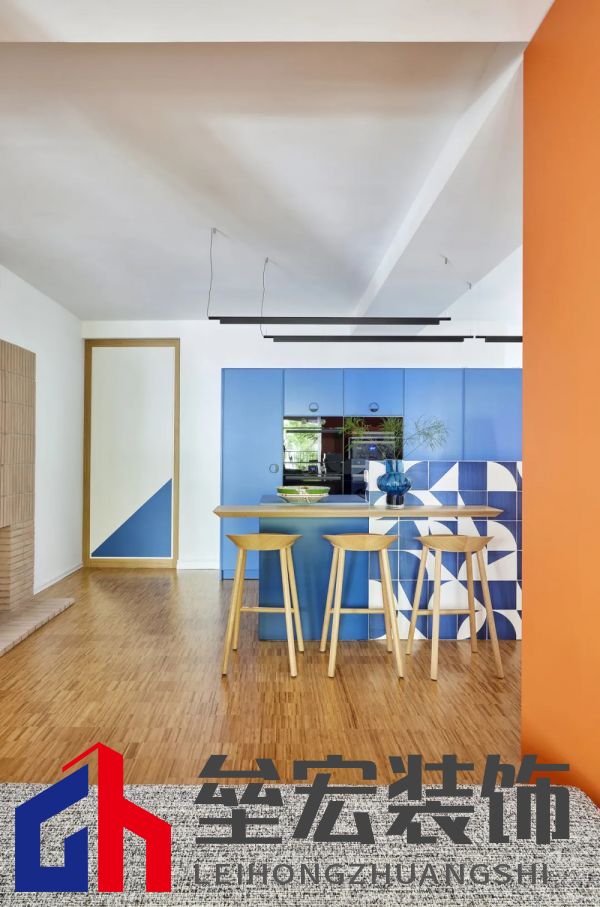 負(fù)責(zé)翻新這套位于馬德里市中心公寓的建筑師兼室內(nèi)設(shè)計(jì)師Blanca?Rosa?Gutiérrez解釋說(shuō):“這個(gè)家庭要求我們?cè)O(shè)計(jì)一個(gè)充滿活力、色彩和光線的住宅?!睘榱藢?shí)現(xiàn)這一挑戰(zhàn),必須徹底拆除原有結(jié)構(gòu)?!拔覀冎槐A袅吮跔t,但在壁爐周?chē)O(shè)計(jì)了一個(gè)新的框架,使其成為一個(gè)主要元素:素雅的磚面,同時(shí)公共區(qū)域的橙色和藍(lán)色相輔相成。”