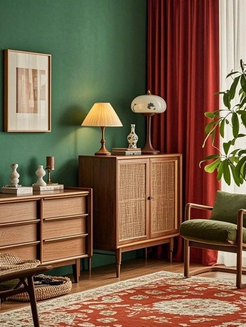 04 綠色 綠色象征著勃勃生機(jī)與和諧共生,恰似五行之木般郁郁蔥蔥,滋養(yǎng)萬物。綠色不僅是生命力的展現(xiàn),更寓意希望與新生,同時(shí)也是平靜與安寧的象征。 在室內(nèi)裝修中,綠色可以作為墻面,與褐色實(shí)木家具恰到好處的搭配,紅色作為窗簾或地毯點(diǎn)綴,讓整個(gè)空間既帶有鮮明的時(shí)代色彩,又有著浪漫的人文情懷,處處都能感受寧靜優(yōu)雅。