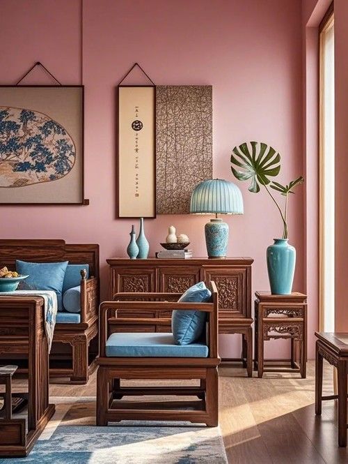 2025年伊始,DeepSeek等生成式AI技術(shù)的飛躍性突破,將人工智能的應(yīng)用推向了一個(gè)嶄新的巔峰。在文化自信蔚然成風(fēng)的社會大環(huán)境下,中式美學(xué)持續(xù)升溫。這次我們聚焦蓬勃興起的中式美學(xué)潮流,通過AI技術(shù)模擬各式中式色彩,打造虛實(shí)交融、別具一格的創(chuàng)新設(shè)計(jì)范式,概念化呈現(xiàn)傳統(tǒng)與現(xiàn)代交織的無限可能。與西洋色卡不同,東方家居色彩的運(yùn)用更傾向于以色彩為媒介,傳達(dá)深邃的隱喻與象征,它們沿著細(xì)膩的色彩梯度,賦予空間無盡的詩意與遐想。 01 粉色 粉色作為色彩譜系中溫婉雅致的一員,常被視為柔和與浪漫的象征。它不似紅色那般熾烈,卻自有一番溫馨與恬靜之美。粉色在情感表達(dá)上,寓意著純真無邪的童真、細(xì)膩溫婉的愛情以及對美好生活的向往。 用粉色作為墻面擁抱整個(gè)房間,棕色做地板或木制家居,藍(lán)色作為裝飾或織物,產(chǎn)生一種寧靜的磁場,營造一種溫馨而又不失深邃的氛圍。