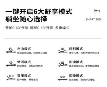 ??功能強(qiáng)大,雖然都是在床上,但不同場景的功能卻大不相同,如何能夠解決多體態(tài)的人體工程學(xué)問題,誼瑞推出的六大模式智能體驗(yàn),讓消費(fèi)者在不同場景享受不同貼心服務(wù): ??模式1:休閑模式:抬腿舒壓,放松腿部肌肉; ??模式2:觀影模式:舒緩疲勞,護(hù)腰享生活 ??模式3:閱讀模式:支撐腿部腰部,健康閱讀 ??模式4:零壓模式:腿高心臟,減少脊椎承壓 ??模式5:深睡模式:貼合人七區(qū),延長深睡時間 ??模式6:自由模式:輕松起背起腿,躺坐隨心選擇