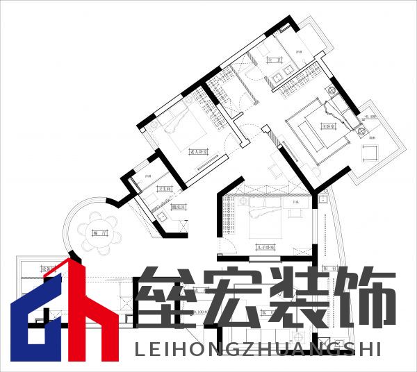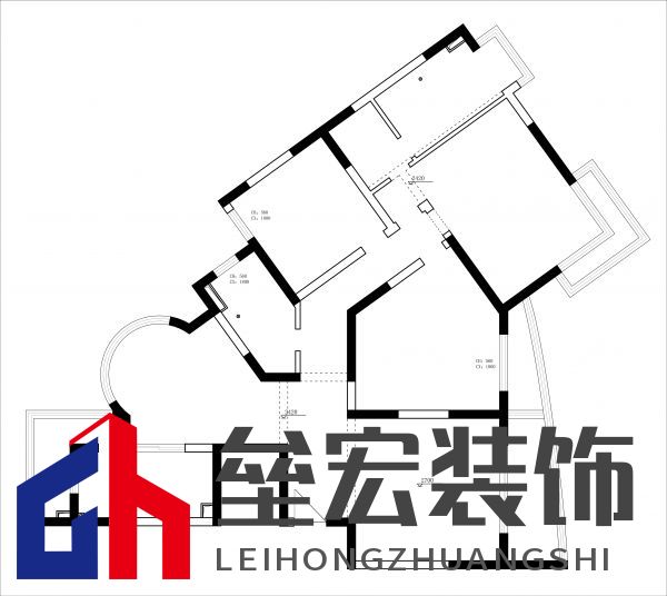 ??然而,家家有本難念的經,裝修也是如此。在改造前,張女士家的房型是比較少見的不規(guī)則戶型,因此改造的難點在于戶型的結構調整和廚房功能區(qū)的劃分。首先,該戶型有三個陽臺,但是由于限制,全部使用的利用價值不高。其次,廚房對于整個戶型的面積和居住人口偏小,但是餐廳區(qū)域有非常漂亮的圓弧形落地玻璃窗。再次,走道過于狹長,主臥室床背景墻面偏短,與如此大面積的戶型相比缺乏大氣。  改造前戶型圖