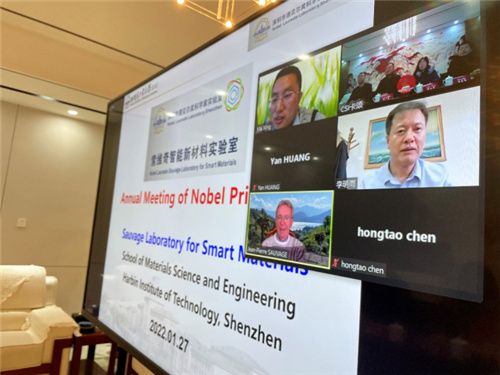 | 2022年1月27日,在中國(guó)傳統(tǒng)節(jié)日春節(jié)來(lái)臨之際,一場(chǎng)跨國(guó)的線上視頻會(huì)議在長(zhǎng)沙、深圳,斯特拉斯堡(法國(guó))三地舉行,2016年諾貝爾化學(xué)獎(jiǎng)得主讓·皮埃爾·索維奇教授,哈爾濱工業(yè)大學(xué)(深圳校區(qū))材料學(xué)院執(zhí)行院長(zhǎng)、索維奇智能新材料實(shí)驗(yàn)室主任李明雨教授,哈爾濱工業(yè)大學(xué)(深圳校區(qū))馬星教授、張嘉恒教授,卡頌技術(shù)發(fā)明人徐海教授、卡頌智能壁材董事長(zhǎng)曾廣斌、總經(jīng)理周立連三方代表共21人參加線上會(huì)議,另外會(huì)議還特邀長(zhǎng)沙市住建局陳義芳處長(zhǎng)出席,共同見(jiàn)證索維奇智能新材料實(shí)驗(yàn)室的結(jié)出的豐碩技術(shù)成果。