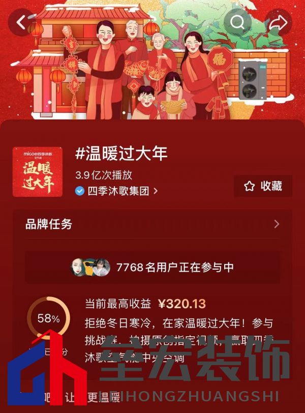 ??四季沐歌空氣能—面面俱到舒適體驗 ??暖身亦暖心,將“暖”字貫穿至活動的每一處細節(jié)??梢哉f,#溫暖過大年#抖音挑戰(zhàn)賽以喜聞樂見且簡單易行的方式,全心助力消費者打造令人向往的、溫暖的生活場景,體現(xiàn)了四季沐歌對消費者需求的深度洞察,引導(dǎo)消費者建立更符合現(xiàn)代人生活節(jié)奏與精神追求的生活方式。截至到2月3日,即大年初三,#溫暖過大年#抖音區(qū)域挑戰(zhàn)賽已播放超過3.9億次,成為這個新年里的又一個全新“年俗”。