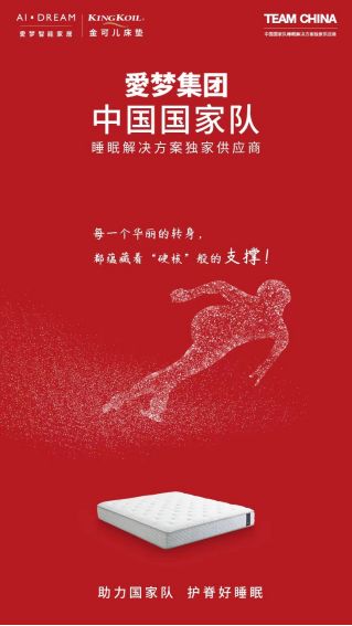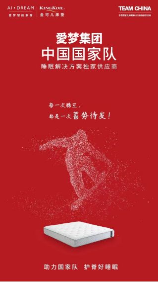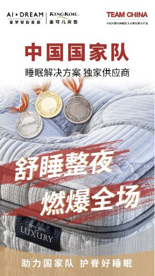 ??金可兒品牌所屬愛夢集團,是TEAM CHINA中國國家隊睡眠解決方案供應(yīng)商。金可兒護脊好睡眠,助力中國國家隊出征!與此同時,金可兒提醒您:賽事很精彩,觀賽注意勞逸結(jié)合,享受歡聚團圓美好時光。