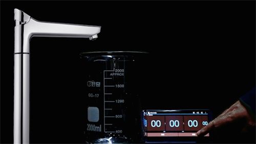 ??還有童鎖功能保障熱水取用安全,每次用熱水時(shí),需要先解鎖龍頭上的童鎖鍵,熱水才會(huì)流出;如8秒內(nèi)無操作,龍頭自動(dòng)鎖屏。看來是研究了熱水在實(shí)際使用中的習(xí)慣,為誤操作而導(dǎo)致的燙傷多了一道防護(hù)。 ??水流通暢 量大且規(guī)整 ??凈水機(jī)流量的大小,直接影響到消費(fèi)者的使用體驗(yàn),市面在售的很多品牌已經(jīng)把凈水機(jī)型號(hào)命名規(guī)則,從以前的加侖數(shù)命名變成流量命名規(guī)則,消費(fèi)者更直觀Get流量這一核心參數(shù),足可見:出水流量已經(jīng)成為消費(fèi)者在選購凈水機(jī)時(shí)一個(gè)重要指標(biāo)。那么就實(shí)測(cè)一下這款凈水機(jī)的凈水(冷)和熱水流量: