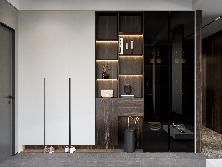 通透明亮的玻璃隔斷 2.柜體隔斷 如果有進(jìn)門(mén)正面或側(cè)面有足夠的空間且沒(méi)有遮擋墻體的話,就可以定制或購(gòu)置成品柜體來(lái)進(jìn)行隔斷,除了能收納物品,讓進(jìn)門(mén)處更干凈整潔以為,還能起到裝飾空間的作用,從入戶(hù)就開(kāi)始提升空間顏值。
