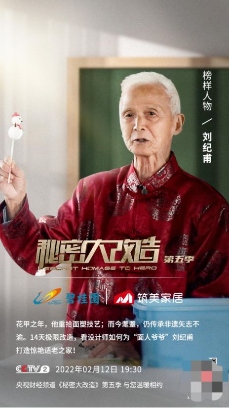 ??如今已是耄耋之年的劉紀甫老人,依舊為傳承面塑非遺忙碌奔波著。本期《秘密大改造》邀請到d尖設計師覃思,攜手碧桂園集團旗下筑美家居,為這位86歲的非遺傳承人改善居住環(huán)境。