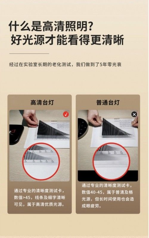??除此之外,一款好臺燈最基本要具備的各項數(shù)據(jù)指標,別人的最高要求也是飛行班的最低標準。亮度為549.6lm(遠超國AA級標準250-500lm),清晰度>45,博物館級顯色指數(shù)>94,0藍光(RG=0)和防眩光都是最基本的必要前提條件。在市場嚴格的審視下,必須做到比市場更為嚴苛!孩子在家學習眼睛有保障,為父母解除焦慮。