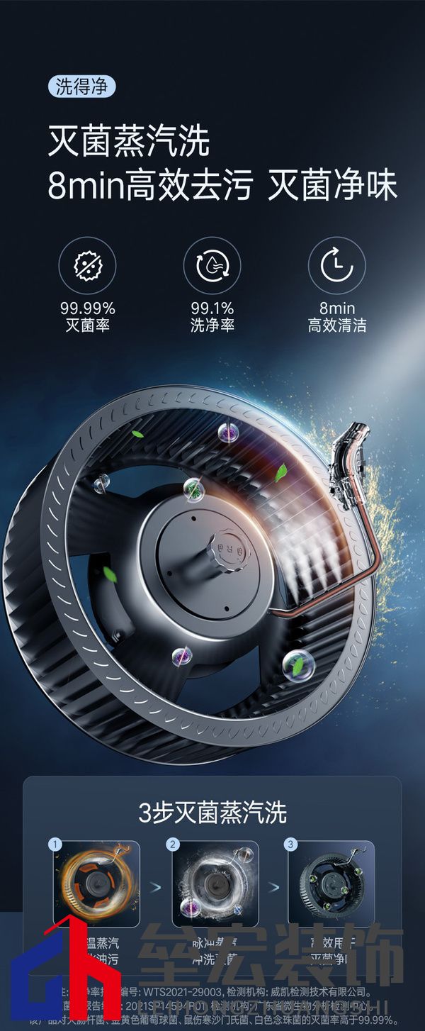 這一臺(tái)美的頂側(cè)雙吸集成灶LS5通過(guò)用戶手勢(shì)智控,體感操作,帶來(lái)了這種隨心掌控的科技感。舉手之間,風(fēng)量隨心,用智控凈煙,告別煙霧繚繞;揮手智控,化繁為簡(jiǎn),用輕松手勢(shì),告別繁瑣按鍵。借助于揮手體驗(yàn),用戶可有效防止指間水漬和油污浸染面板,還原面板潔凈無(wú)痕。 因此揮一揮,揮走的不僅是油煙,更是復(fù)雜枯燥的烹飪生活。而帶來(lái)的,則是美的集成灶懂生活更懂你的智慧體驗(yàn)。 第四招:八分鐘滅菌凈味的清潔體驗(yàn) 占據(jù)廚房C位的集成灶,在用凈煙保證全家健康的同時(shí),又該如何保持自身內(nèi)部清潔,避免出現(xiàn)將干凈獻(xiàn)給廚房,而將油污留給自己的情形?答案是定期清洗。 為此,常見的清洗方案有請(qǐng)專業(yè)師傅上門清潔和自主清潔。前者每次清洗成本估算約300元。如果按每年清洗兩次來(lái)算,8年清洗費(fèi)用就要4800元,太費(fèi)錢。后者雖然省錢,但是自主拆洗,很容易因?yàn)椴皇煜?nèi)部結(jié)構(gòu),導(dǎo)致拆得下,裝不上,還會(huì)弄臟廚房,零件滿地,實(shí)則費(fèi)時(shí)費(fèi)力。