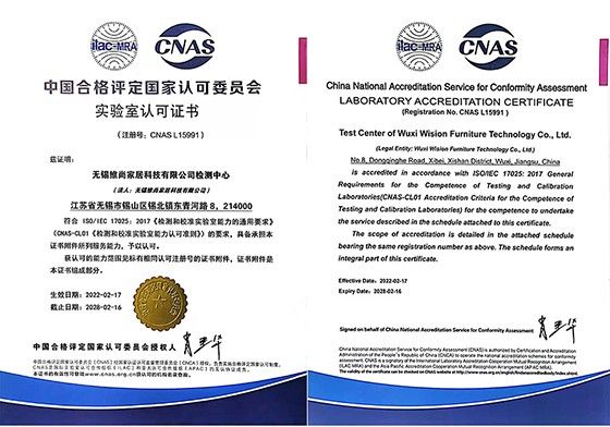▲無錫基地檢測中心獲CNAS認可證書 ??國家認可實驗室有多厲害?只要具備了國際互認資質,相當于其產品檢驗的結果,無障礙通行60多個國家和地區(qū)的“國際通行證”。 ??維意定制無錫檢測中心成立于2020年3月,同步于無錫基地建成試產時期,硬件設施引進了行業(yè)領先的檢測設備,從一開始檢測工作就嚴格按照國家CNAS要求,就近護航無錫基地為華東、華北及周邊區(qū)域客戶提供高品質家居定制產品。