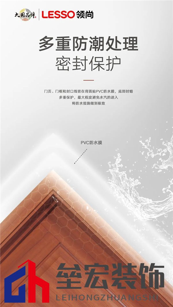 ??背面防護很重要 ??在挑選的時候一定要對背面細(xì)節(jié)關(guān)注,防止靠墻面以及當(dāng)空氣中的水汽凝結(jié)成水珠在木門上滑落時的濕氣入侵(想想自己每次洗澡后的木門)。領(lǐng)尚木門門頁、門框和封口線,皆在背面貼PVC防水膜,有效防止空氣中的水分侵入板材內(nèi)部,讓防潮效果更進(jìn)一步。