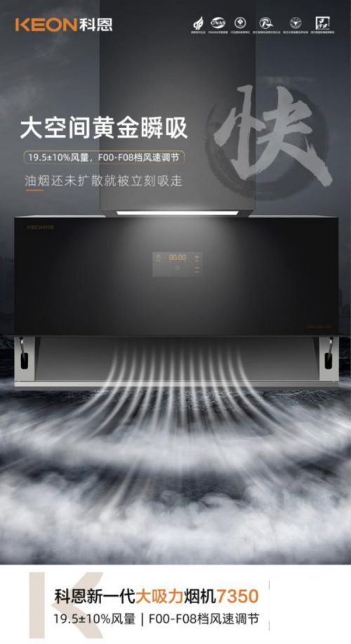 | 科恩新一代大吸力煙機7350即將上市,今天就跟隨小編一起,解鎖7350煙機獨特魅力。