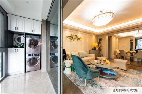 對(duì)于洗護(hù)場(chǎng)景而言,卡薩帝也依托嵌入式科技實(shí)現(xiàn)顛覆:洗衣機(jī)的純平嵌入,同樣實(shí)現(xiàn)了洗衣機(jī)前板與櫥柜純平一體,配合針對(duì)“纖維秩序”的五度數(shù)控科技,衣物輕松開(kāi)啟“養(yǎng)護(hù)”之旅的同時(shí)更為陽(yáng)臺(tái)空間的打造提供更多可能。