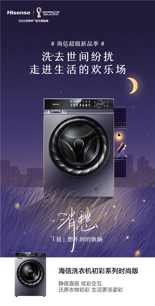 為用戶帶來“易”想不到的潔凈。“海信洗衣機初彩系列時尚版”靜音直驅(qū)、炫彩交互,還原衣物出彩,讓生活多姿多彩。