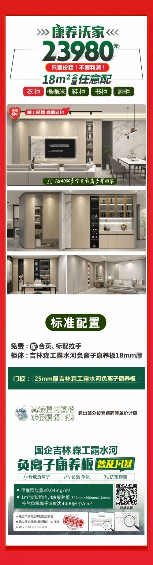 | 近日愛(ài)閣工房迎來(lái)自己的19周年大慶,此次慶典不僅有全新套餐和多項(xiàng)福利活動(dòng)推出,更有FM970女主播傾情助陣:全屋定制就選愛(ài)閣工房-康養(yǎng)沃家,門板和柜體均采用國(guó)企吉林森工露水河負(fù)離子康養(yǎng)板,可以把4000多個(gè)負(fù)氧離子帶回家,持久釋放負(fù)氧離子,長(zhǎng)效凈化,抗菌抑菌。18㎡衣柜 鞋柜 酒柜 書柜 榻榻米全屋任意配,僅需23980元,讓家人擁有清新舒適的居家環(huán)境,健康得到保障,是家庭最大的財(cái)富。