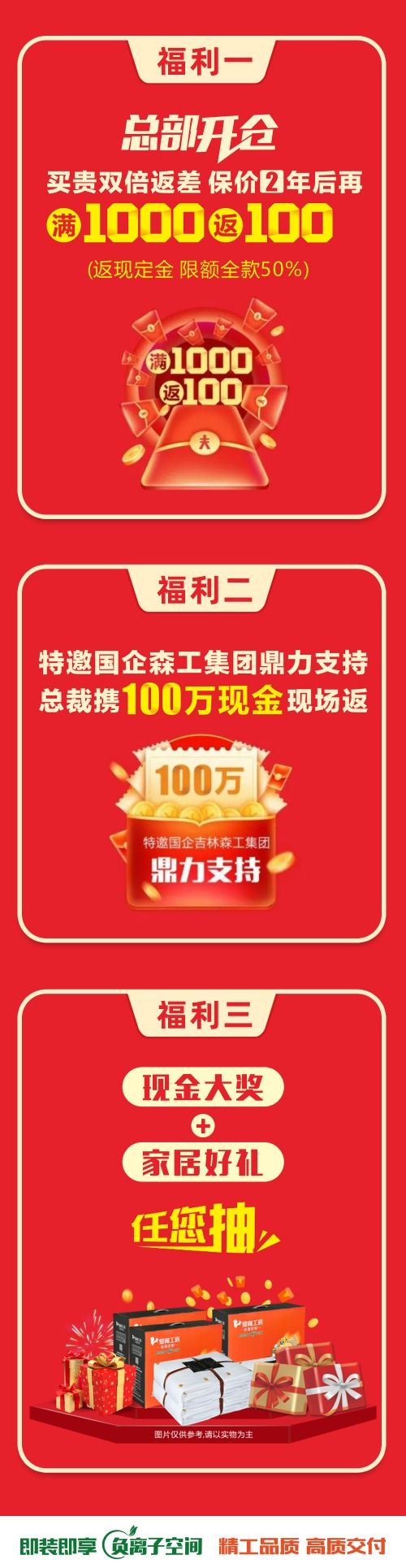 本月盛大啟動(dòng)19周年大慶,總部開倉(cāng)直享出廠價(jià),保價(jià)2年后再滿1000返100,特邀國(guó)企吉林森工集團(tuán)鼎力支持,總裁攜100萬(wàn)現(xiàn)金現(xiàn)場(chǎng)返,返現(xiàn)活動(dòng)正在如火如荼進(jìn)行,返現(xiàn)余額分秒遞減,返完即止。多重福利優(yōu)惠超值襲來(lái),全屋定制就選愛(ài)閣工房!