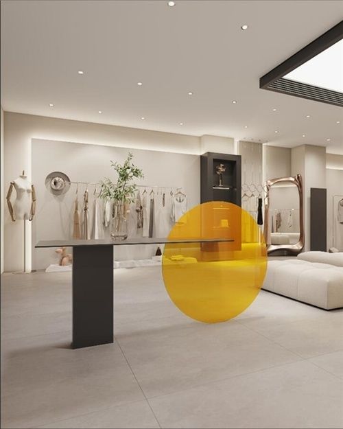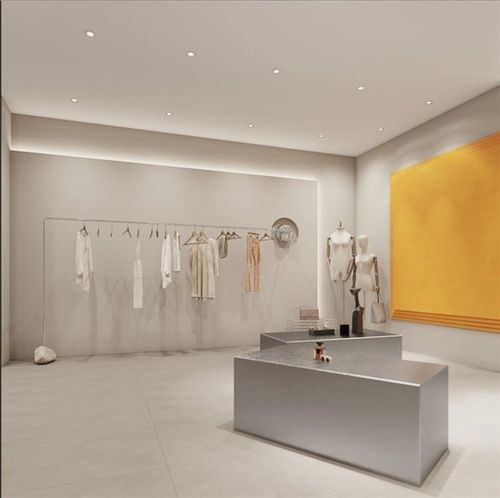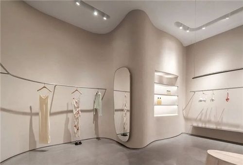 重置室內(nèi)設(shè)計(jì),窺見浪漫色彩,利用藝術(shù)涂料打造自然風(fēng)格,溫柔低調(diào)的米色,透露出隱隱高 級質(zhì)感,喚醒沉睡的藝術(shù)感官,讓顧客享受著購物所帶來的愉悅感的同時,開啟一場服裝與藝術(shù)的對話。 收銀臺同樣落落大方,圓弧線條,給空間增添一抹柔和美感,金屬元素的運(yùn)用更顯精致,在現(xiàn)代主義的濾鏡下,極簡以新形態(tài)呈現(xiàn),有限的空間營造出舒適休閑的氛圍。