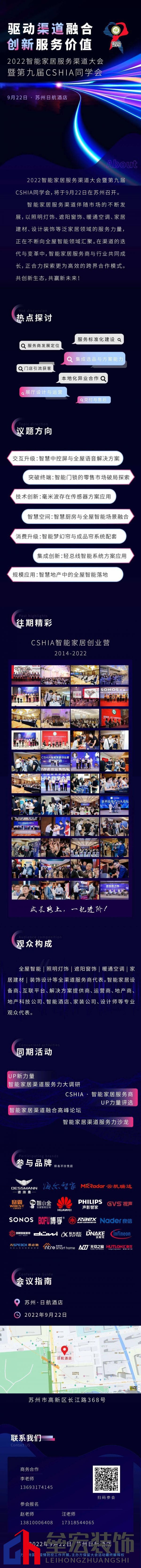 ??2022年9月22日,“2022智能家居服務(wù)渠道大會暨第九屆CSHIA同學(xué)會”即將在蘇州舉行。本屆大會以驅(qū)動渠道融合?創(chuàng)新服務(wù)價值為主題,全面聚焦全屋智能、照明燈飾、遮陽窗飾、暖通空調(diào)、家居建材、裝飾設(shè)計等當(dāng)下智能家居行業(yè)最為關(guān)注的核心方向,并圍繞服務(wù)商發(fā)展定位、服務(wù)標(biāo)準(zhǔn)化建設(shè)、集成選品與方案能力、門店引流獲客、本地化異業(yè)合作、展廳設(shè)計與運營、交付與售后等議題展開探討。