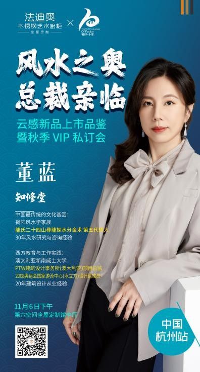 ??11月6日,法迪奧“解密家居風水哲學”巡講沙龍·杭州站,將在杭州第六空間定制館法迪奧旗艦店展廳盛大開啟。 ??活動特別邀請風水大師董藍老師親臨現(xiàn)場。 ??◎ 分享家居禁忌利好 ??◎ 解析私宅風水、家居財位 ??◎ 現(xiàn)場答疑解惑 ??◎ 為有更高需求的嘉賓提供家居風水定制方案
