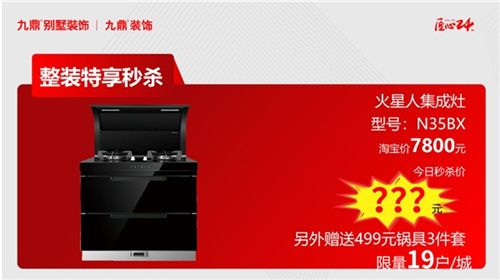 火星人集成灶,型號(hào):N35BX,淘寶價(jià)7800元,今日秒殺價(jià)???元,另外贈(zèng)送499元鍋3件套(限量版19戶/城)